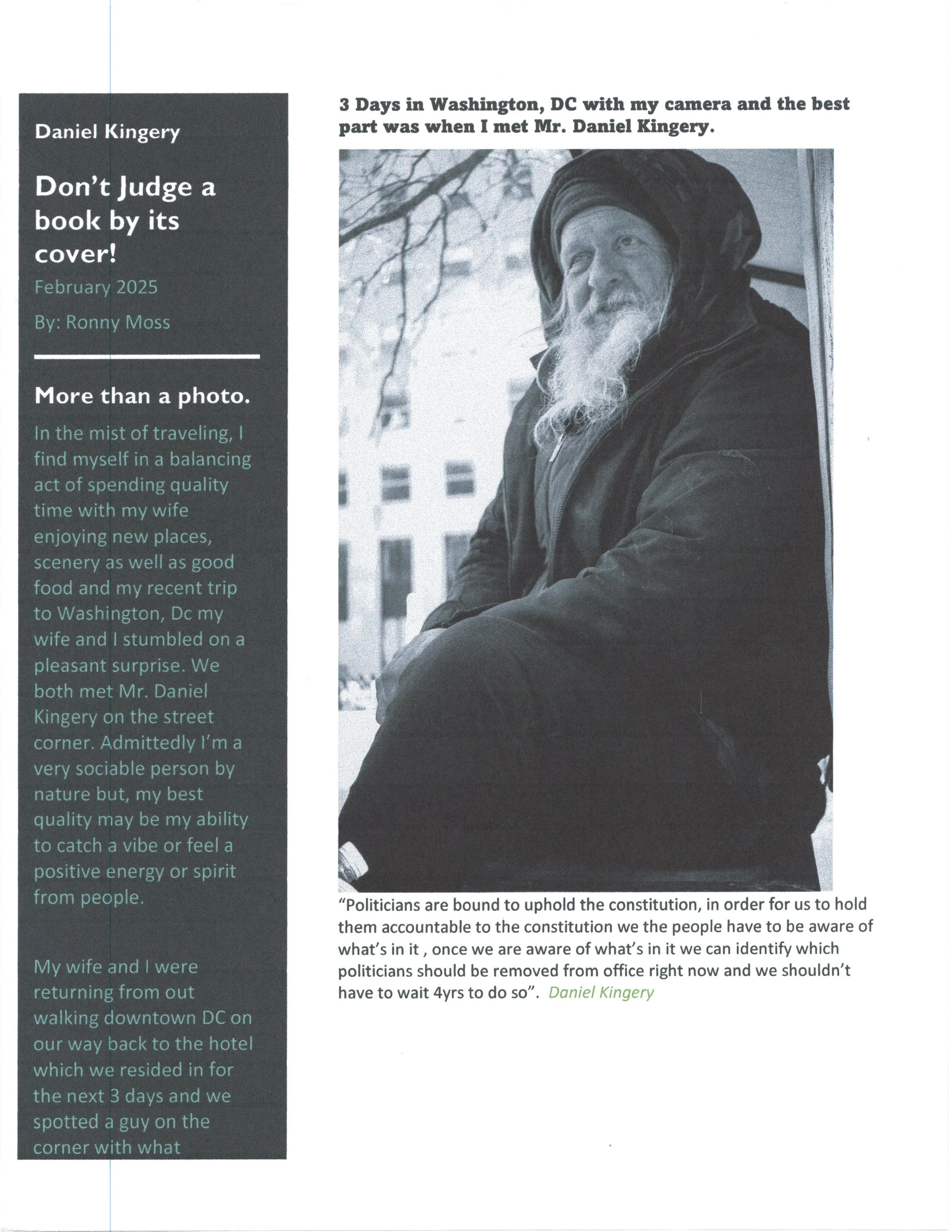 My Camera is my spiritual connection to the beauty of life that we overlook and the possibilities of what could be. My wife and I are on A 50 state tour meeting people of all walks of Life. On a recent trip to Washington DC, I met Mr. Daniel Kingery, and the pleasure was all mine.